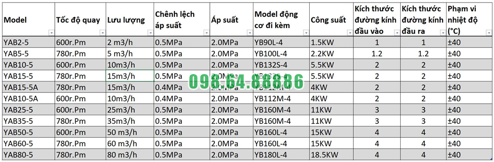 Với lưu lượng khoảng 2 m³/h và tốc độ quay 600 vòng/phút, Bơm khí hóa lỏng YAB2-5 đáp ứng tốt nhu cầu vận chuyển trong nhiều quy mô hệ thống.