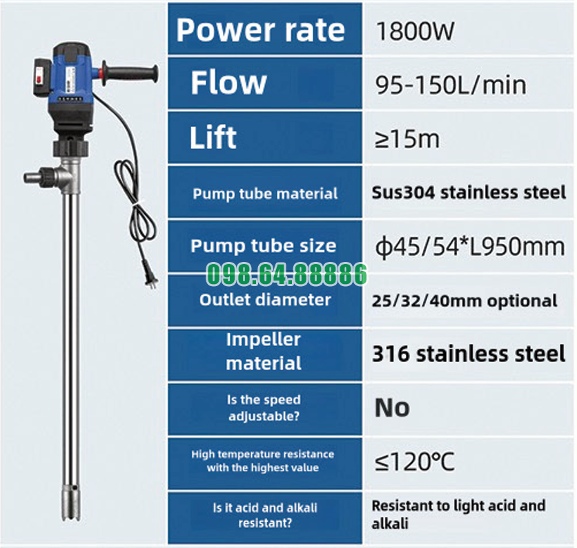 Bơm thùng phuy nhiệt độ cao JDT-1800W-G120 được sử dụng để:
