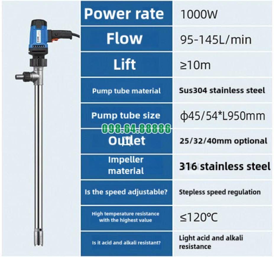 Bơm dầu đứng thùng phuy JDT-1000W-G120