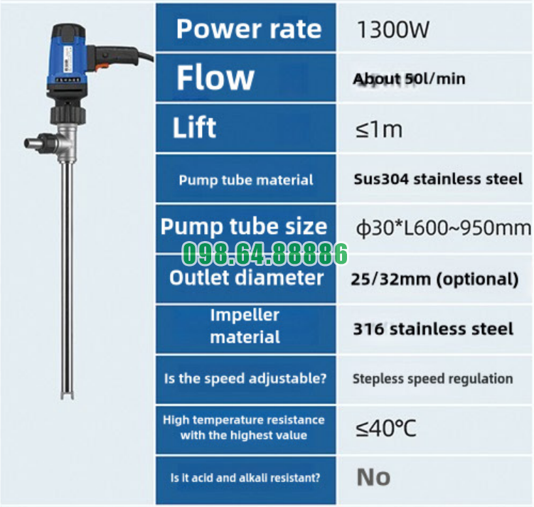 Trục bơm được thiết kế phù hợp với chiều sâu thùng phuy tiêu chuẩn, cho phép đầu hút tiếp cận sát đáy. Cơ chế này giúp Bơm thùng phuy JDT-1300W-30 SUS304 hút được gần như toàn bộ lượng chất lỏng bên trong, hạn chế tồn dư và giảm lãng phí nguyên liệu.