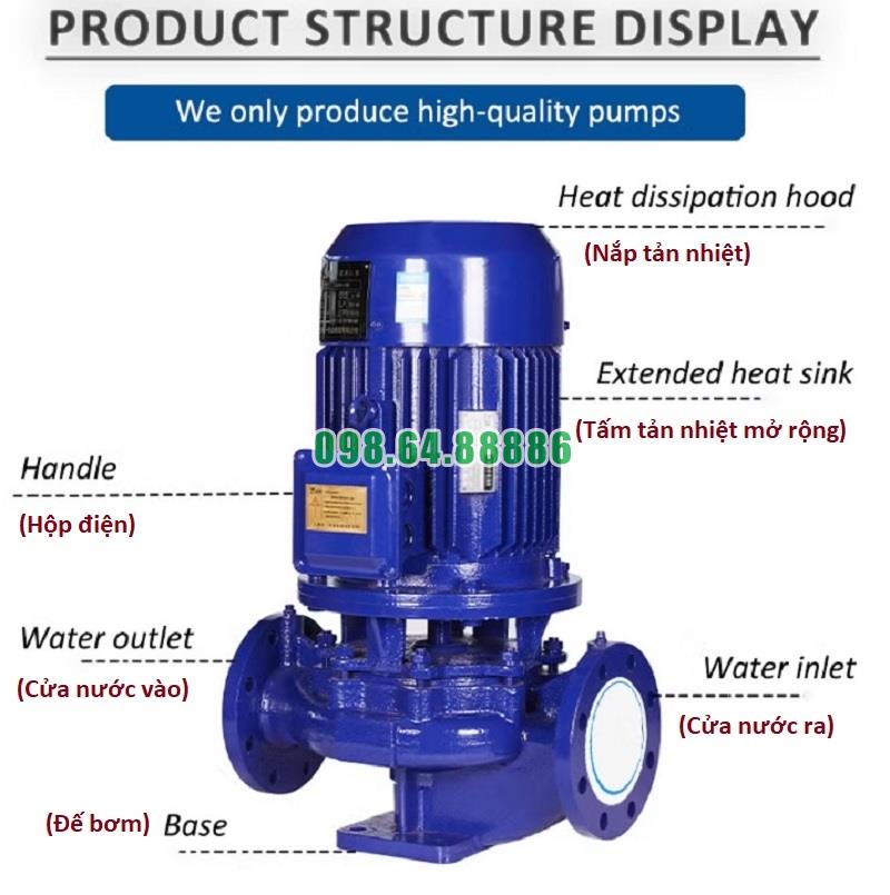 Bơm đường ống trục đứng, bơm tăng áp, bơm booster inline ISG65-160, IRG65-160 4kw