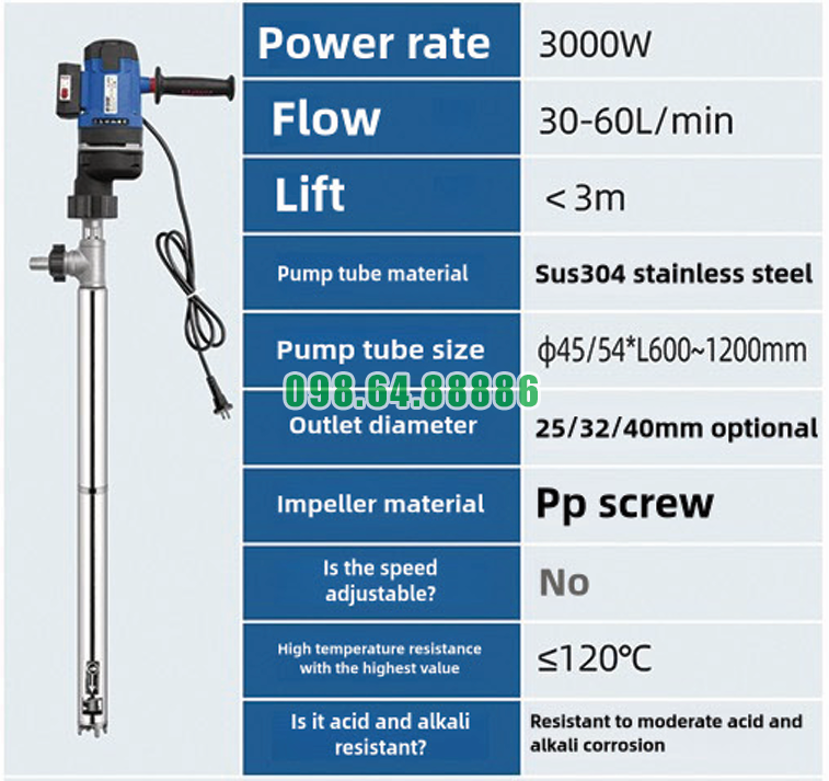 Giải pháp bơm hút chất lỏng nhớt với Máy bơm điện chất lỏng JDT-3000W-LGG120 được thiết kế để xử lý hiệu quả các loại dung dịch có độ đặc cao trong thùng phuy hoặc thùng chứa công nghiệp. Nhờ cấu trúc trục vít và động cơ công suất lớn, thiết bị giúp quá trình hút và vận chuyển chất lỏng nhớt diễn ra ổn định và liên tục.