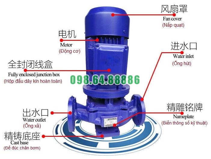 Máy bơm đồng trục thẳng đứng, bơm lùa, inline ISG80-200B, IRG80-200B 15kw, 43m3, 60m