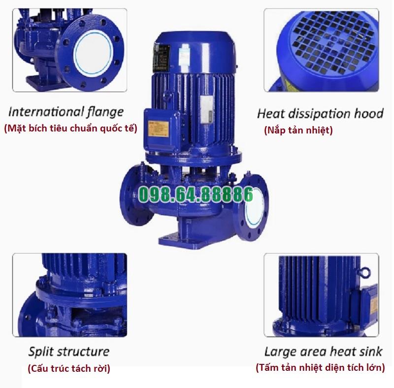 Máy bơm ly tâm, bơm tăng áp trục đứng, bơm đường ống ISG100-125, IRG100-125 11kw, 100m3, 20m