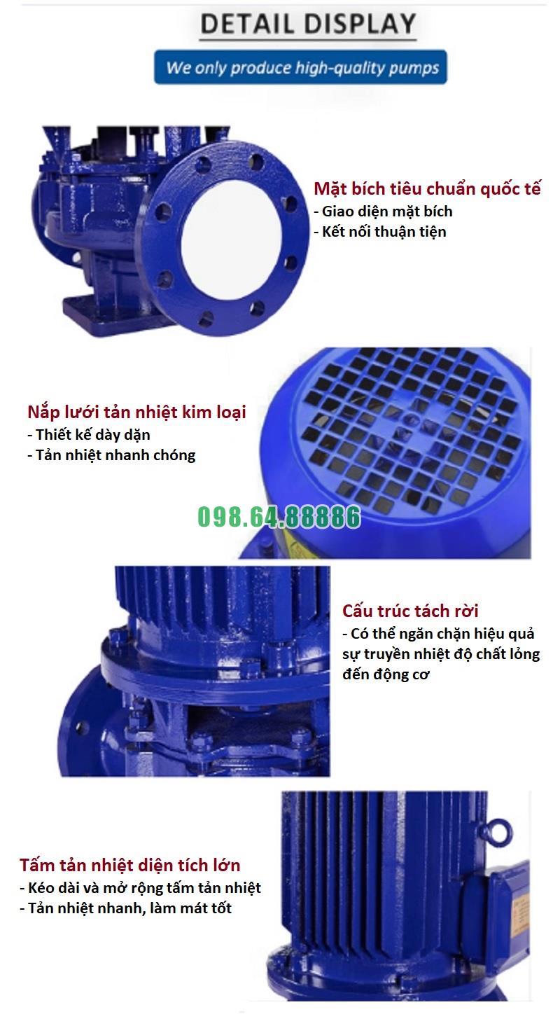 Máy bơm ly tâm trục đứng, bơm lùa, tăng áp, bơm inline ISG65-200, IRG65-200, 7.5kw, 25m3